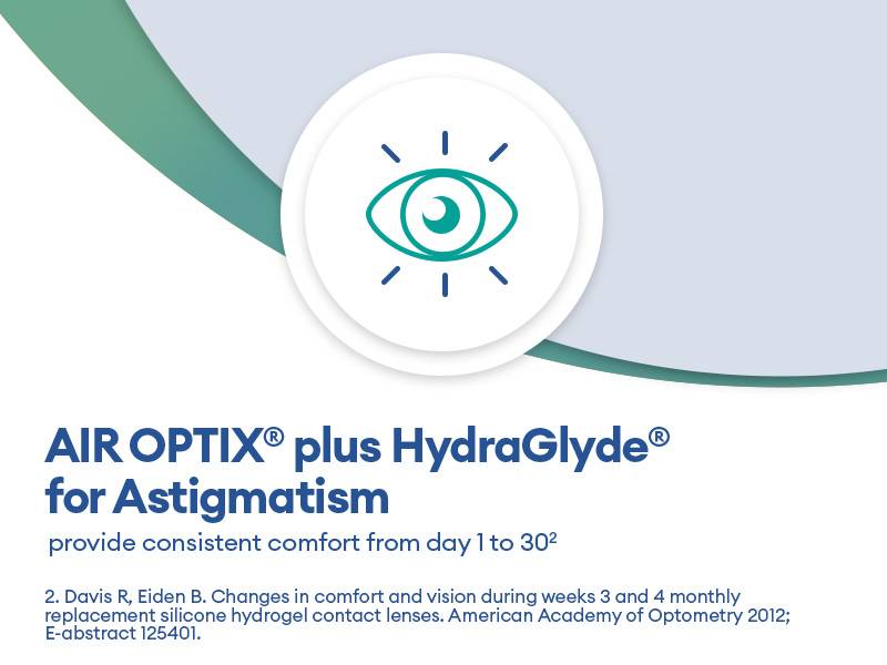 Air Optix plus Hydraglyde for Astigmatism toric lenses have