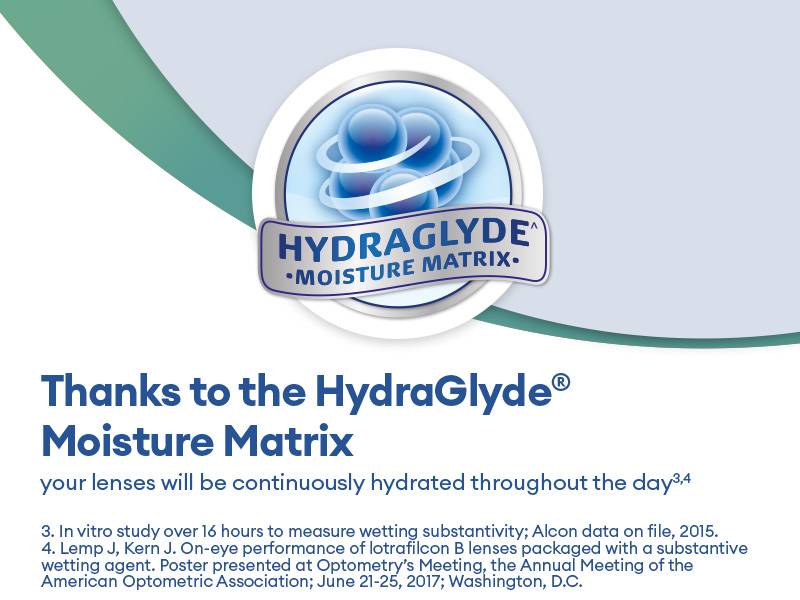 HydraGlyde® contact lenses benefit from HydraGlyde® Moisture Matrix