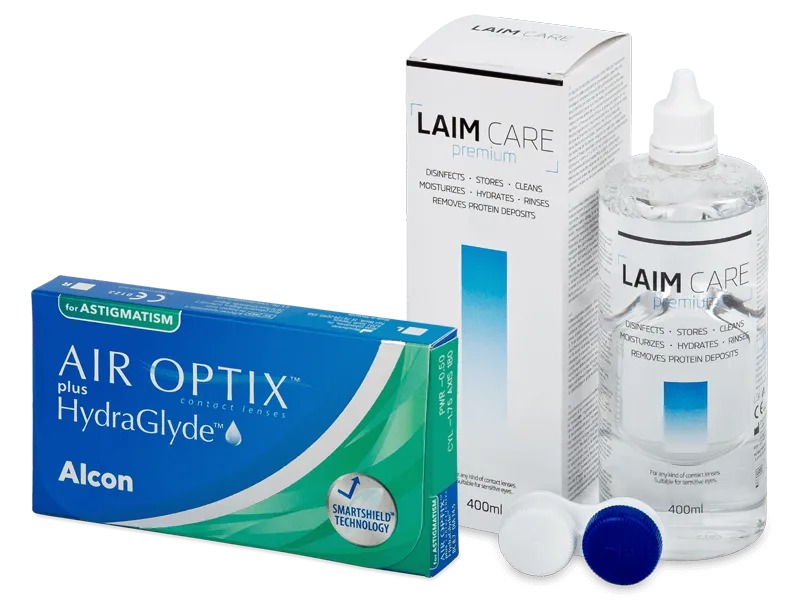Air Optix plus HydraGlyde for Astigmatism (6 lenses) + Laim Care Solution 400 ml